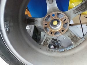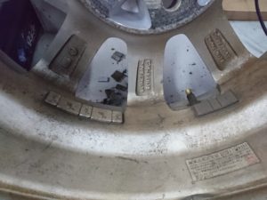 古いウェイトを剥さずホイールバランスを取ったのでしょう・・・ウェイト量を見るとちゃんと剥しておけば1ヶ所に25~30gでスッキリした事でしょう。