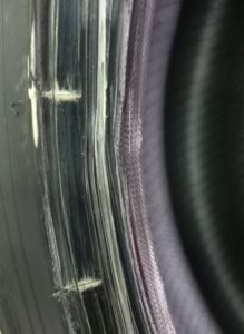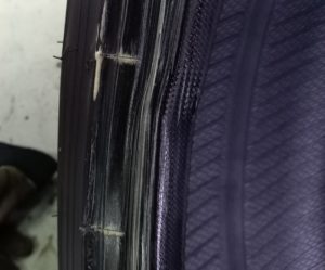 タイヤの内部を密閉する為に重要な「ビード部」に歪みがある品物が流通しておりました。タイヤメーカーが正規に出荷している物であればこのような品が流通していたら信用問題となります。既に答えを書いてしまいましたが、こちらの商品は国内タイヤメーカーのブランドですが、「並行輸入品」です。私も原産国を見るまでは、この変形に気が付かず組付けを行う準備をしている際に違和感を感じ発見に至りました。